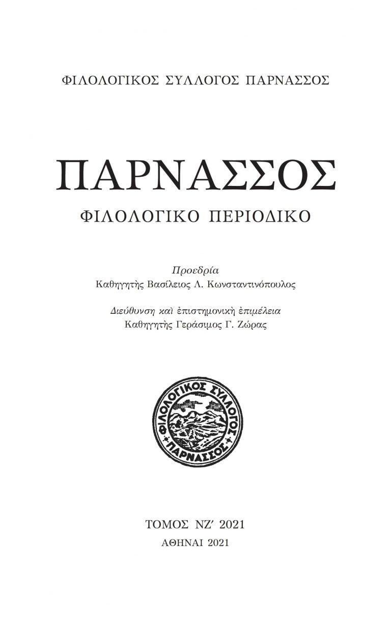Εκδότης : Φιλολογικός Σύλλογος Παρνασσός