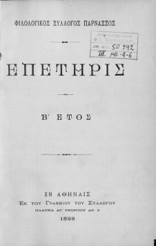 Συγγραφέας ή Δημιουργός : Φιλολογικός Σύλλογος Παρνασσός