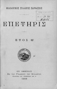 Συγγραφέας ή Δημιουργός : Φιλολογικός Σύλλογος Παρνασσός
