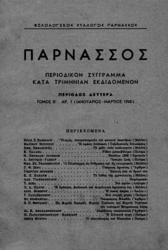 “ΠΑΡΝΑΣΣΟΣ” ΠΕΡΙΟΔΙΚΟΝ ΣΥΓΓΡΑΜΜΑ ΚΑΤΑ ΤΡΙΜΗΝΙΑΝ ΕΚΔΙΔΟΜΕΝΟΝ-ΠΕΡΙΟΔΟΣ ΔΕΥΤΕΡΑ, ΤΟΜΟΣ Β’, ΑΡΙΘΜΟΣ 1 (ΙΑΝΟΥΑΡΙΟΣ-ΜΑΡΤΙΟΣ 1960)