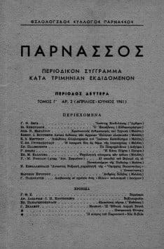 “ΠΑΡΝΑΣΣΟΣ” ΠΕΡΙΟΔΙΚΟΝ ΣΥΓΓΡΑΜΜΑ ΚΑΤΑ ΤΡΙΜΗΝΙΑΝ ΕΚΔΙΔΟΜΕΝΟΝ-ΠΕΡΙΟΔΟΣ ΔΕΥΤΕΡΑ, ΤΟΜΟΣ Γ’, ΑΡΙΘΜΟΣ 2 (ΑΠΡΙΛΙΟΣ-ΙΟΥΝΙΟΣ 1961)