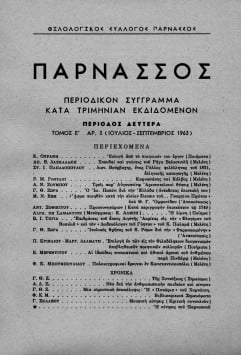 “ΠΑΡΝΑΣΣΟΣ” ΠΕΡΙΟΔΙΚΟΝ ΣΥΓΓΡΑΜΜΑ ΚΑΤΑ ΤΡΙΜΗΝΙΑΝ ΕΚΔΙΔΟΜΕΝΟΝ-ΠΕΡΙΟΔΟΣ ΔΕΥΤΕΡΑ, ΤΟΜΟΣ Ε’, ΑΡΙΘΜΟΣ 3 (ΙΟΥΛΙΟΣ-ΣΕΠΤΕΜΒΡΙΟΣ 1963)