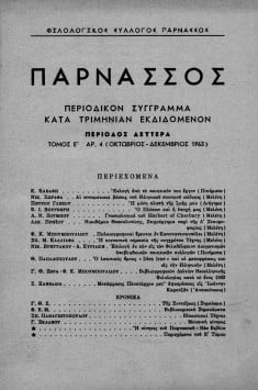 “ΠΑΡΝΑΣΣΟΣ” ΠΕΡΙΟΔΙΚΟΝ ΣΥΓΓΡΑΜΜΑ ΚΑΤΑ ΤΡΙΜΗΝΙΑΝ ΕΚΔΙΔΟΜΕΝΟΝ-ΠΕΡΙΟΔΟΣ ΔΕΥΤΕΡΑ, ΤΟΜΟΣ Ε’, ΑΡΙΘΜΟΣ 4 (ΟΚΤΩΒΡΙΟΣ-ΔΕΚΕΜΒΡΙΟΣ 1963)