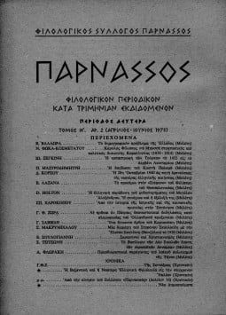 “ΠΑΡΝΑΣΣΟΣ” ΦΙΛΟΛΟΓΙΚΟΝ ΠΕΡΙΟΔΙΚΟΝ ΚΑΤΑ ΤΡΗΜΙΝΙΑΝ ΕΚΔΙΔΟΜΕΝΟΝ-ΠΕΡΙΟΔΟΣ ΔΕΥΤΕΡΑ, ΤΟΜΟΣ ΙΕ’, ΑΡΙΘΜΟΣ 2 (ΑΠΡΙΛΙΟΣ-ΙΟΥΝΙΟΣ 1973