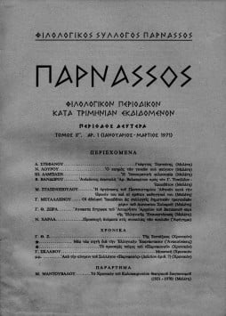 “ΠΑΡΝΑΣΣΟΣ” ΦΙΛΟΛΟΓΙΚΟΝ ΠΕΡΙΟΔΙΚΟΝ ΚΑΤΑ ΤΡΗΜΙΝΙΑΝ ΕΚΔΙΔΟΜΕΝΟΝ-ΠΕΡΙΟΔΟΣ ΔΕΥΤΕΡΑ, ΤΟΜΟΣ ΙΓ’, ΑΡΙΘΜΟΣ 1 (ΙΑΝΟΥΑΡΙΟΣ-ΜΑΡΤΙΟΣ 1971)