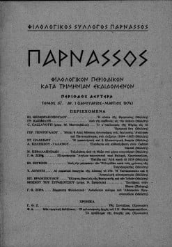 “ΠΑΡΝΑΣΣΟΣ” ΦΙΛΟΛΟΓΙΚΟΝ ΠΕΡΙΟΔΙΚΟΝ ΚΑΤΑ ΤΡΗΜΙΝΙΑΝ ΕΚΔΙΔΟΜΕΝΟΝ-ΠΕΡΙΟΔΟΣ ΔΕΥΤΕΡΑ, ΤΟΜΟΣ ΙΣΤ’,ΑΡΙΘΜΟΣ 1 (ΙΑΝΟΥΑΡΙΟΣ-ΜΑΡΤΙΟΣ 1974)