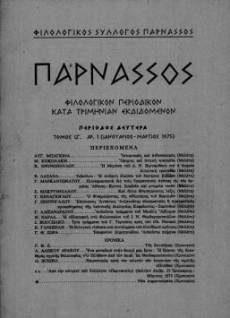 “ΠΑΡΝΑΣΣΟΣ” ΦΙΛΟΛΟΓΙΚΟΝ ΠΕΡΙΟΔΙΚΟΝ ΚΑΤΑ ΤΡΗΜΙΝΙΑΝ ΕΚΔΙΔΟΜΕΝΟΝ-ΠΕΡΙΟΔΟΣ ΔΕΥΤΕΡΑ,ΤΟΜΟΣ ΙΖ’,ΑΡΙΘΜΟΣ 1 (ΙΑΝΟΥΑΡΙΟΣ-ΜΑΡΤΙΟΣ 1975)