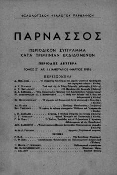 “ΠΑΡΝΑΣΣΟΣ” ΠΕΡΙΟΔΙΚΟΝ ΣΥΓΓΡΑΜΜΑ ΚΑΤΑ ΤΡΙΜΗΝΙΑΝ ΕΚΔΙΔΟΜΕΝΟΝ-ΠΕΡΙΟΔΟΣ ΔΕΥΤΕΡΑ, ΤΟΜΟΣ Ζ ’, ΑΡΙΘΜΟΣ 1 (ΙΑΝΟΥΑΡΙΟΣ-ΜΑΡΤΙΟΣ 1965)