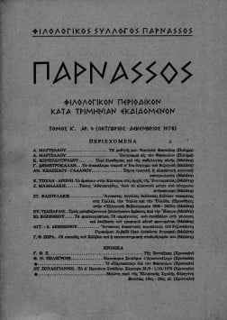 “ΠΑΡΝΑΣΣΟΣ” ΦΙΛΟΛΟΓΙΚΟΝ ΠΕΡΙΟΔΙΚΟΝ ΚΑΤΑ ΤΡΗΜΙΝΙΑΝ ΕΚΔΙΔΟΜΕΝΟΝ,ΤΟΜΟΣ Κ’, ΑΡΙΘΜΟΣ 4 (ΟΚΤΩΒΡΙΟΣ-ΔΕΚΕΜΒΡΙΟΣ 1978)