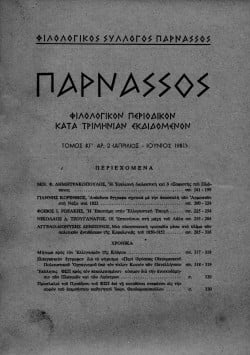 Εκδότης : Φιλολογικός Σύλλογος Παρνασσός