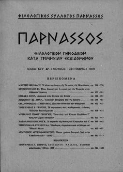 “ΠΑΡΝΑΣΣΟΣ” ΦΙΛΟΛΟΓΙΚΟΝ ΠΕΡΙΟΔΙΚΟΝ ΚΑΤΑ ΤΡΗΜΙΝΙΑΝ ΕΚΔΙΔΟΜΕΝΟΝ,ΤΟΜΟΣ ΚΣΤ’, ΑΡΙΘΜΟΣ 3 (ΙΟΥΛΙΟΣ-ΣΕΠΤΕΜΒΡΙΟΣ 1984)