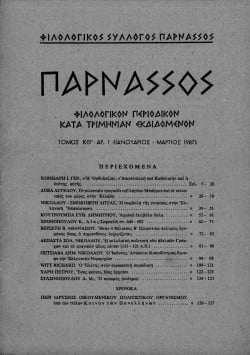 “ΠΑΡΝΑΣΣΟΣ” ΦΙΛΟΛΟΓΙΚΟΝ ΠΕΡΙΟΔΙΚΟΝ ΚΑΤΑ ΤΡΗΜΙΝΙΑΝ ΕΚΔΙΔΟΜΕΝΟΝ, ΤΟΜΟΣ ΚΘ’,ΑΡΙΘΜΟΣ 1 (ΙΑΝΟΥΑΡΙΟΣ-ΜΑΡΤΙΟΣ 1987)