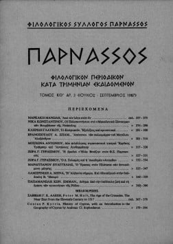 “ΠΑΡΝΑΣΣΟΣ” ΦΙΛΟΛΟΓΙΚΟΝ ΠΕΡΙΟΔΙΚΟΝ ΚΑΤΑ ΤΡΗΜΙΝΙΑΝ ΕΚΔΙΔΟΜΕΝΟΝ, ΤΟΜΟΣ ΚΘ’, ΑΡΙΘΜΟΣ 3 (ΙΟΥΛΙΟΣ-ΣΕΠΤΕΜΒΡΙΟΣ 1987)