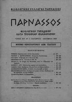 “ΠΑΡΝΑΣΣΟΣ” ΦΙΛΟΛΟΓΙΚΟΝ ΠΕΡΙΟΔΙΚΟΝ ΚΑΤΑ ΤΡΗΜΙΝΙΑΝ ΕΚΔΙΔΟΜΕΝΟΝ, ΤΟΜΟΣ ΚΘ’, ΑΡΙΘΜΟΣ 4 (ΟΚΤΩΒΡΙΟΣ-ΔΕΚΕΜΒΡΙΟΣ 1987)