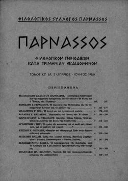 “ΠΑΡΝΑΣΣΟΣ” ΦΙΛΟΛΟΓΙΚΟΝ ΠΕΡΙΟΔΙΚΟΝ ΚΑΤΑ ΤΡΗΜΙΝΙΑΝ ΕΚΔΙΔΟΜΕΝΟΝ,ΤΟΜΟΣ ΚΖ’, ΑΡΙΘΜΟΣ 2 (ΑΠΡΙΛΙΟΣ-ΙΟΥΝΙΟΣ 1985)