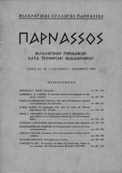 “ΠΑΡΝΑΣΣΟΣ” ΦΙΛΟΛΟΓΙΚΟΝ ΠΕΡΙΟΔΙΚΟΝ ΚΑΤΑ ΤΡΗΜΙΝΙΑΝ ΕΚΔΙΔΟΜΕΝΟΝ,ΤΟΜΟΣ ΚΖ’, ΑΡΙΘΜΟΣ 4 (ΟΚΤΩΒΡΙΟΣ-ΔΕΚΕΜΒΡΙΟΣ 1985)