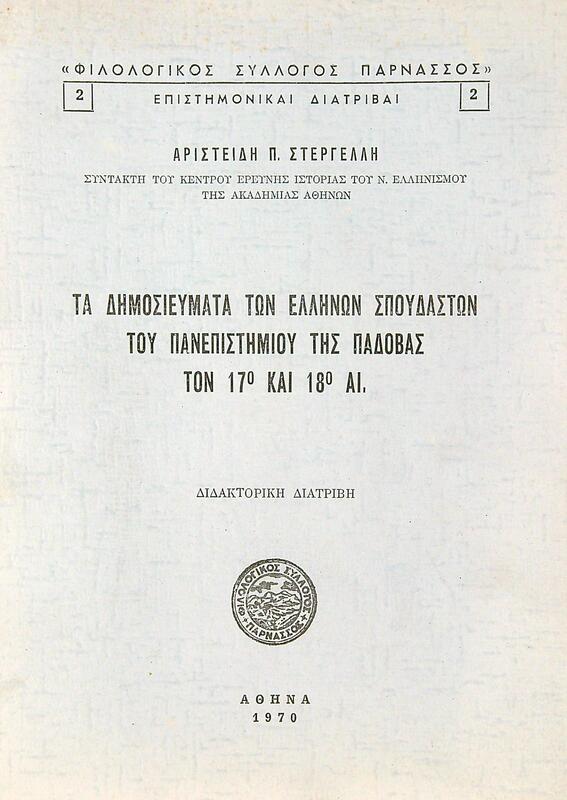 ΤΑ ΔΗΜΟΣΙΕΥΜΑΤΑ ΤΩΝ ΕΛΛΗΝΩΝ ΣΠΟΥΔΑΣΤΩΝ ΤΟΥ ΠΑΝΕΠΙΣΤΗΜΙΟΥ ΤΗΣ ΠΑΔΟΒΑΣ ΤΟΝ 17Ο ΚΑΙ 18Ο ΑΙΩΝΑ