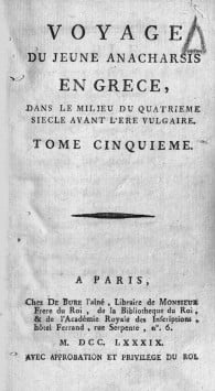 VOYAGE DU JEUNE ANACHARSIS EN GRECE, DANS LE MILIEU DU QUATRIEME SIECLE AVANT L’ERE VULGAIRE, TOME CIN QUIEME