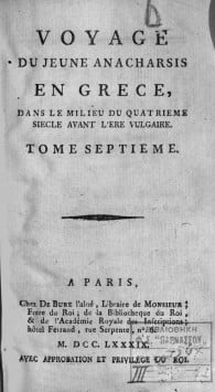 VOYAGE DU JEUNE ANACHARSIS EN GRECE, DANS LE MILIEU DU QUATRIEME SIECLE AVANT L’ERE VULGAIRE, TOME SEPTIEME